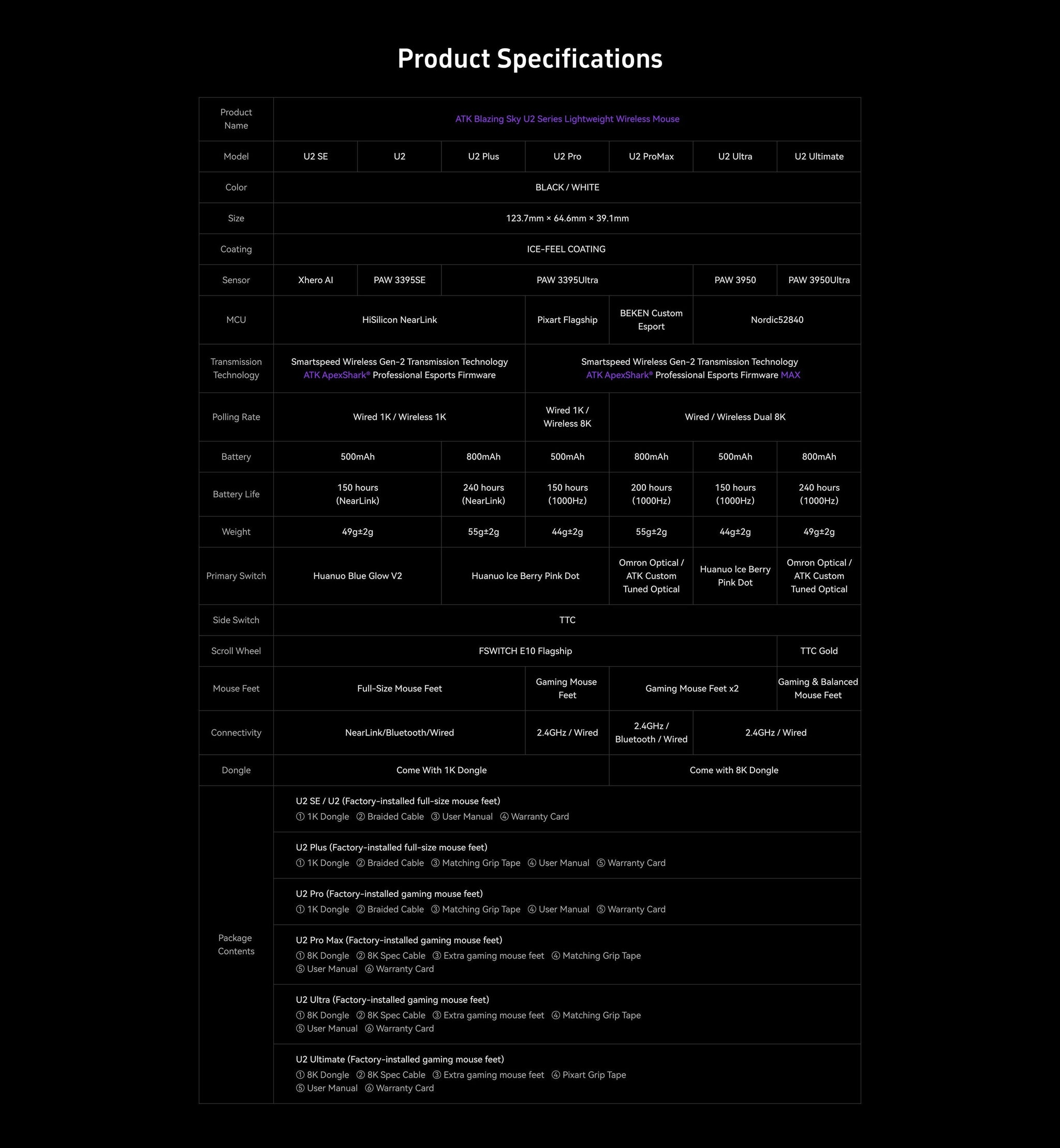 Die ATK U2 Ultimate Mouse (Black) ist eine leichte Wireless-Gaming-Maus, die speziell für Spieler entwickelt wurde, die Wert auf Geschwindigkeit, Präzision und Ergonomie legen. Das schlichte, ergonomische Design mit mattem, griffigem Finish sorgt für komfortable Handhabung bei langen Gaming-Sessions. Aufgrund ihrer leichten Bauweise und der hochwertigen optischen Sensorik ist sie ideal für FPS- oder MOBA-Games, bei denen schnelle und präzise Bewegungen entscheidend sind.