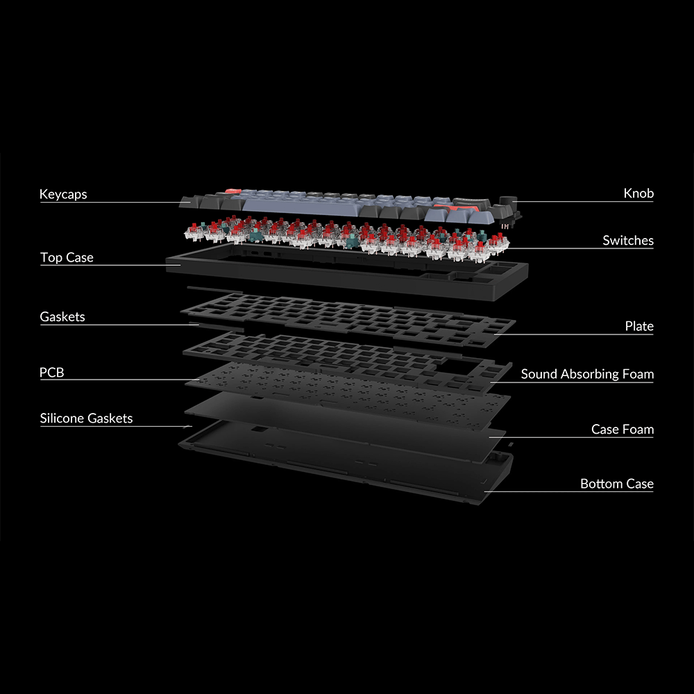 • Schalteraufnahme: Hot-Swap Sockel für 3-Pin & 5-Pin MX-kompatible Schalter