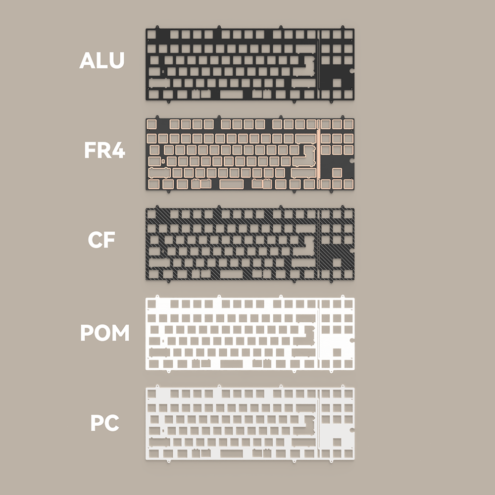 • Plattenmaterialien zur Wahl: Aluminium, FR4, POM, PC, Carbon Fibre – unterschiedliche Klangcharakteristiken („harder“ bis „soft“).