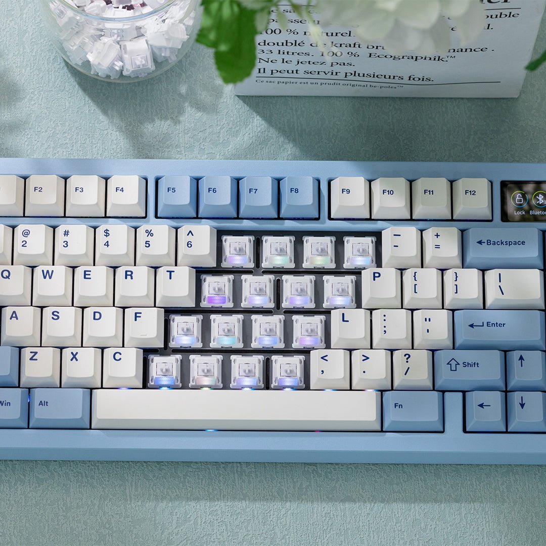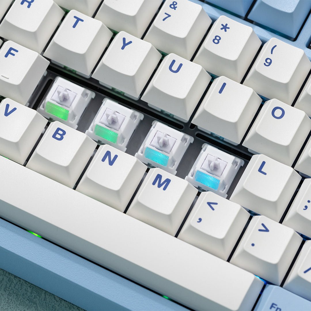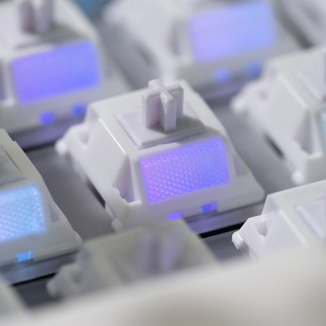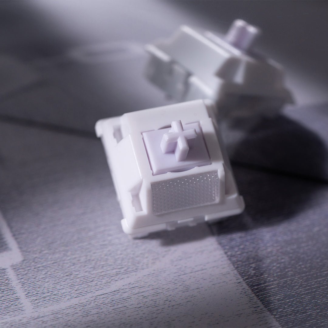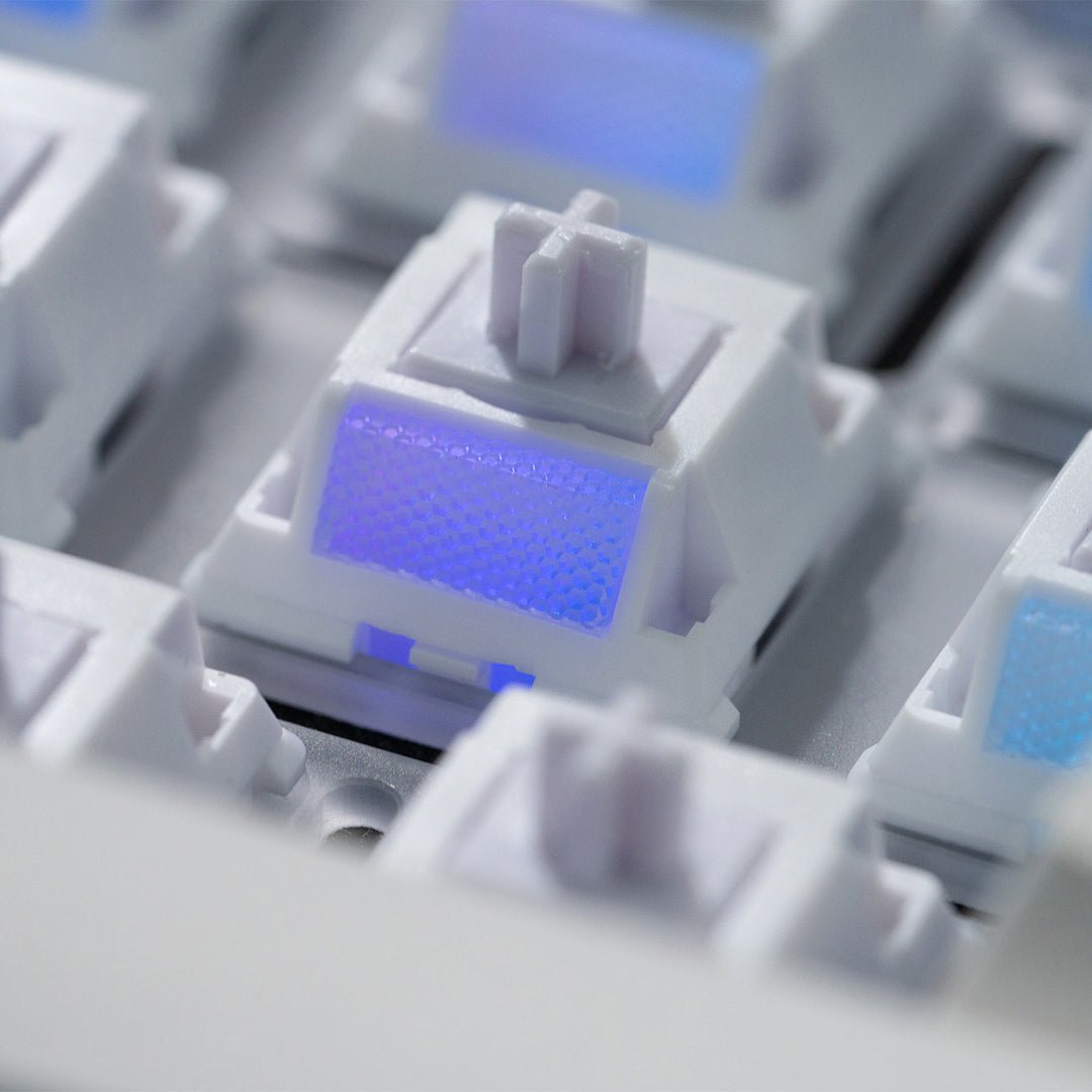 Die WS Morandi Switch-Reihe von Wuque Studio (teilweise in Kooperation mit Haimu) richtet sich an Enthusiasten mechanischer Tastaturen, die ein luxuriöses, hochwertiges Tippgefühl mit stilvoller Optik und RGB-tauglicher Bauweise suchen. Das vollständig aus POM gefertigte Gehäuse sowie der UPE-Stem sorgen für eine spürbar feste, dennoch geschmeidige Haptik. Besonderheit: Jeder Schalter kommt mit einem abnehmbaren Licht-Diffusor, der RGB-Beleuchtung gleichmäßig streut. Bereits werksseitig geschmiert („factory lubed“) liefert der Schalter ein solides Gefühl ohne große Nachbearbeitung – ideal für Builds, bei denen Komfort und Klangbild im Vordergrund stehen.